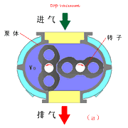 羅茨真空泵工作原理2016-01-15 羅茨泵的工作原理: 羅茨泵的結(jié)構(gòu)如圖所示。在泵腔內(nèi),有二個“8”字形的轉(zhuǎn)子相互垂直地安裝在一對平行軸上,由傳動比為1的一對齒輪帶動.