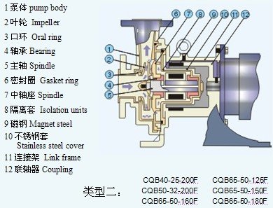 CQ型磁力驅(qū)動泵.簡稱磁力泵,是一種通過磁力傳動器(磁力聯(lián)軸器)來實現(xiàn)無接觸力矩傳遞從而以靜密封取代動密封.使泵達(dá)到完全無泄漏的離心泵。