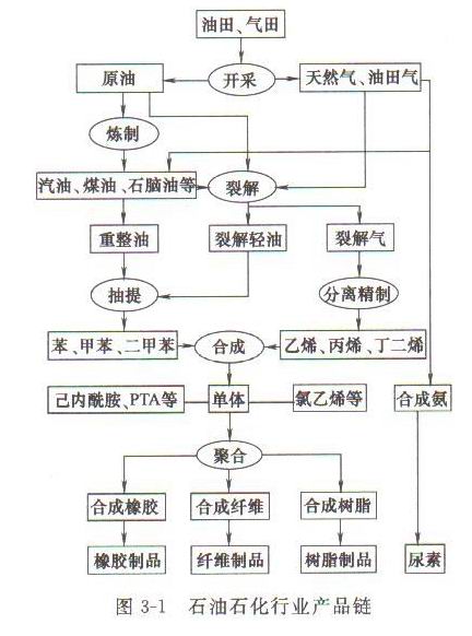 (1) 以石油與天然氣為原料,生產(chǎn)石油產(chǎn)品和石油化工產(chǎn)品的石油化加工工業(yè),其產(chǎn)品鏈如圖3-1所示。