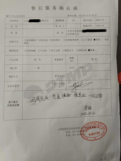 上海帕特泵業(yè)為山東一家客戶完成40臺(tái)磁力泵的開機(jī)調(diào)試。