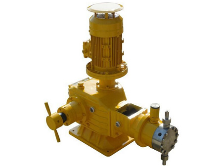 電機(jī)經(jīng)聯(lián)軸器帶動(dòng)蝸桿并通過蝸輪減速使主軸和偏心輪作回轉(zhuǎn)運(yùn)動(dòng),由偏心輪帶動(dòng)挺桿在導(dǎo)筒內(nèi)作往復(fù)運(yùn)動(dòng)。連同柱塞,通過單向閥的作用使泵腔內(nèi)逐漸形成真空,吸入閥打開,吸入液體;當(dāng)柱塞向前死點(diǎn)移動(dòng)時(shí),此時(shí)吸入閥關(guān)閉,排出閥打開,液體在膜片的推動(dòng)下排出。在泵通過調(diào)節(jié)一定的行程的往復(fù)順還工作形成連續(xù)有壓力、定量的排放液體。