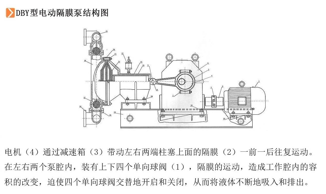 電動隔膜泵的工作原理: