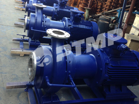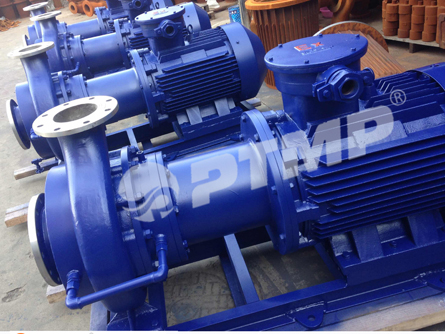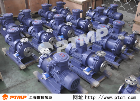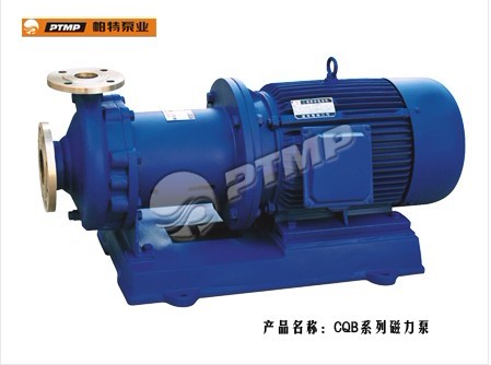 CQB型磁力驅(qū)動泵(簡稱磁力泵),通常由電動機,磁力偶合器和耐腐蝕離心泵組成,其主要特點是利用磁力偶合器傳遞動力,完全無泄露,當電動機帶動磁力偶合器和外磁鋼旋轉(zhuǎn)時,磁力線穿過間隙和隔離套,作用于內(nèi)磁鋼上,使泵轉(zhuǎn)子與電動機同步旋轉(zhuǎn),無機械接觸地傳遞扭矩。在泵軸的動力輸入端,由于液體被封閉在靜止的隔離室內(nèi),沒有動密封因而完全無泄露。泵的過流部件根據(jù)需要可分別采用304、304L、302、321、316、316L、UB6、CD4MCu、鈦合金、鎳基合金等耐腐蝕材料。CQB系列磁力泵是全國聯(lián)合設(shè)計組開發(fā)的新型完全無泄露耐腐蝕泵,其技術(shù)經(jīng)濟指標與國外同類產(chǎn)品八十年代末的水平相當。CQB系列磁力泵形式及基本參數(shù)符合TB/T7742-95《小型磁力傳動離心泵》標準要求。